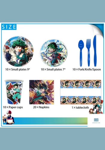 Elevate your celebrations with the ShonenStore Anime Themed Party Tableware Set, a vibrant collection designed to enhance any occasion. This exquisite set includes six essential pieces: paper cups, plates, napkins, and a tablecloth, all adorned with whimsical anime characters and colorful patterns that will delight fans of all ages. Perfect for birthdays, weddings, housewarmings, and more, this versatile tableware set transforms your gathering into a memorable experience. The paper cups feature beloved cartoon figures and playful designs, while the plates provide a delightful backdrop for your culinary creations. Coordinating napkins add a touch of sophistication, and the eye-catching tablecloth serves as the centerpiece, instantly bringing your table to life. Crafted from high-quality, durable paper, this disposable tableware set is both eco-friendly and practical, ensuring a stress-free cleanup. Ideal for various events, including retirement parties, gender reveals, and holiday celebrations, the ShonenStore Anime Themed Party Tableware Set is designed to create a festive atmosphere. Whether you're hosting a child's birthday party or a grand wedding, this charming set will impress your guests and make your event unforgettable. With its unique designs and quality construction, the ShonenStore Anime Themed Party Tableware Set is the perfect choice for anime enthusiasts looking to add a touch of fun and flair to their celebrations. Don't miss out on the opportunity to showcase your love for anime while creating lasting memories with friends and family. Transform your next event into a celebration to remember with this delightful tableware set from ShonenStore.com.