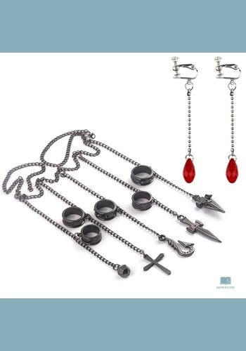 Metal Gothic Pendant Ring Set