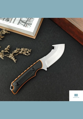 The ShonenStore Military Fixed Blade Knife is a versatile and reliable tool designed for various outdoor activities and tactical situations. Made with high-quality materials, this knife is perfect for camping, hunting, and self-defense. The knife features a 7.6-inch blade made of 8Cr13Mov stainless steel, known for its strength, durability, and resistance to corrosion. The blade is sharp and suitable for a variety of cutting tasks, from slicing through rope to skinning game. Its length and shape make it easy to handle and maneuver, even in tight spaces. The handle is crafted from two-tone G10 material, providing a comfortable and secure grip, while also being resistant to wear and tear, ensuring longevity. With a handle length of 9.6 cm and a width of 25 mm, it is easy to hold and control. The total length of the knife, including the blade, is 17.5 cm, making it compact and portable. Weighing only 133 grams, it is easy to carry in a bag or on a belt. The Kydex sheath protects the blade when not in use and can be attached to a belt or backpack for easy access. The ShonenStore Military Fixed Blade Knife is designed for various situations, from everyday carry to tactical operations. Its high-quality materials and durable construction make it a reliable tool for any outdoor enthusiast or military professional. Whether camping in the woods or facing a dangerous situation, this knife is up to the task.